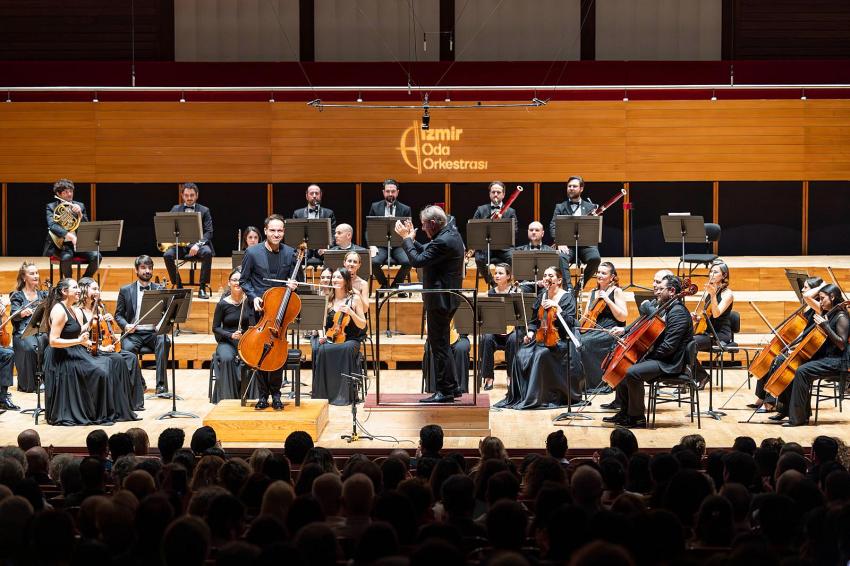 İzmir Oda Orkestrası, Ahmed Adnan Saygun Sanat Merkezi’nde klasik batı müziğinin seçkin eserlerini sanatseverlerle buluşturdu. Dünyaca ünlü şef Howard Griffiths’in yönettiği, solist olarak viyolonsel sanatçısı Dorukhan Doruk’un sahne aldığı konseri İzmir Büyükşehir Belediye Başkanı Dr. Cemil Tugay da izledi.